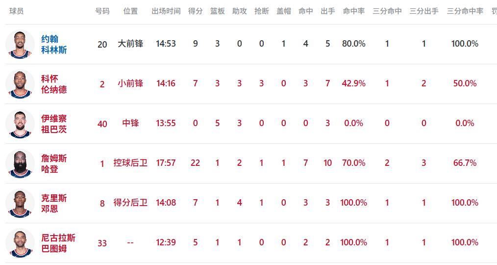 数据上,哈登前半场得分超越20分,22分领跑全场,带队冲击胜仗!