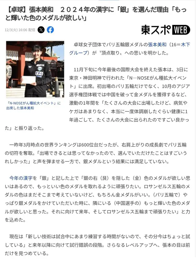 点击输入图片描绘(最多30字)在神社里,张本好意思和许下了愿望。而她许下的这个愿望,则与国乒关系。张本好意思和的愿望为:“我就念念要从中国选手那儿拿到热沈更闪亮的奖牌。为此,我念念发愤到来岁,然后到洛杉矶奥运会收尾。”在几个月前的巴黎奥运会上,张本好意思和曾拿到了银牌,因此拿到热沈更为闪亮的奖牌,天然便是金牌了。看花样,这位实力可以的少壮,贪念还不小。